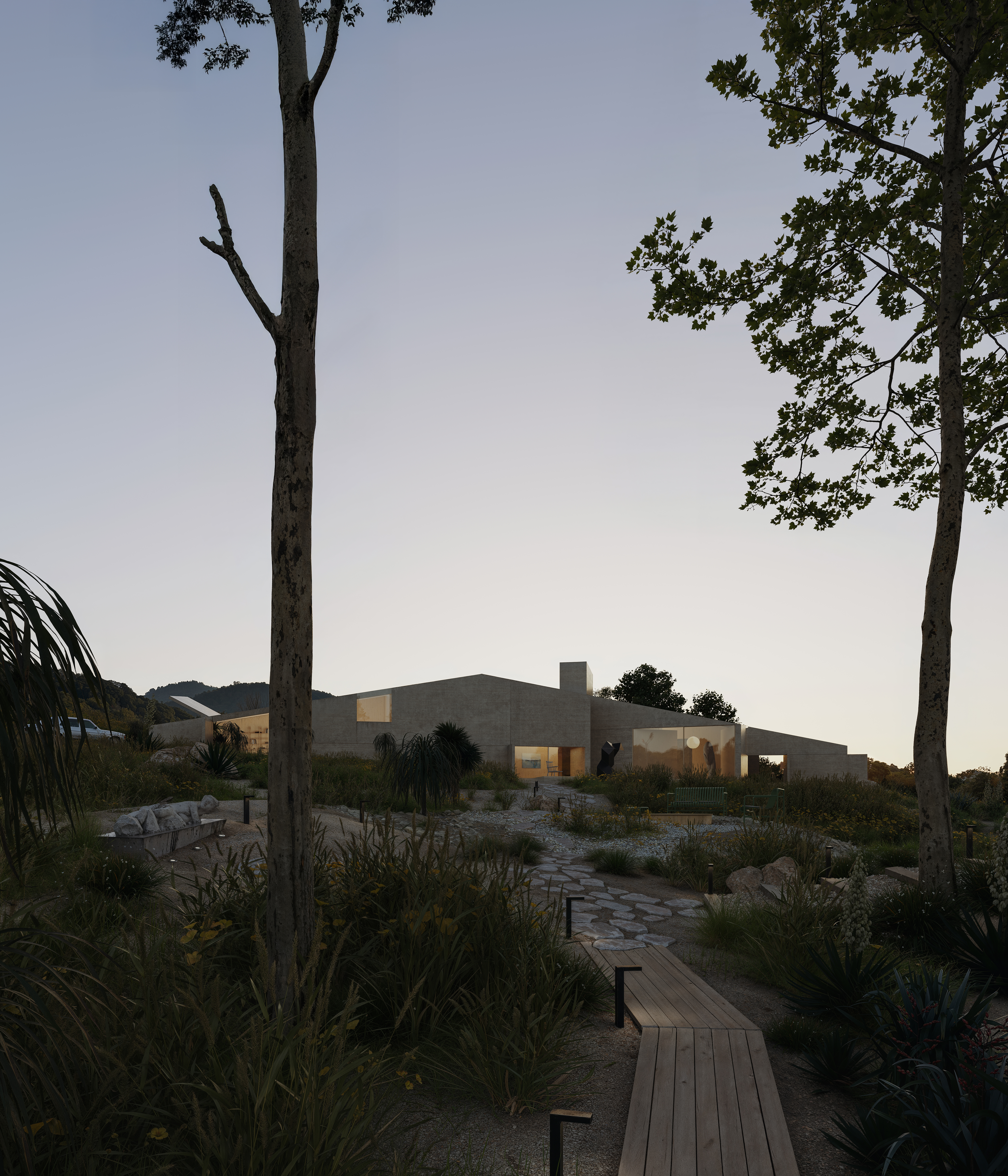 a fire-resistant mass timber residence in Pacific Palisades, CA.