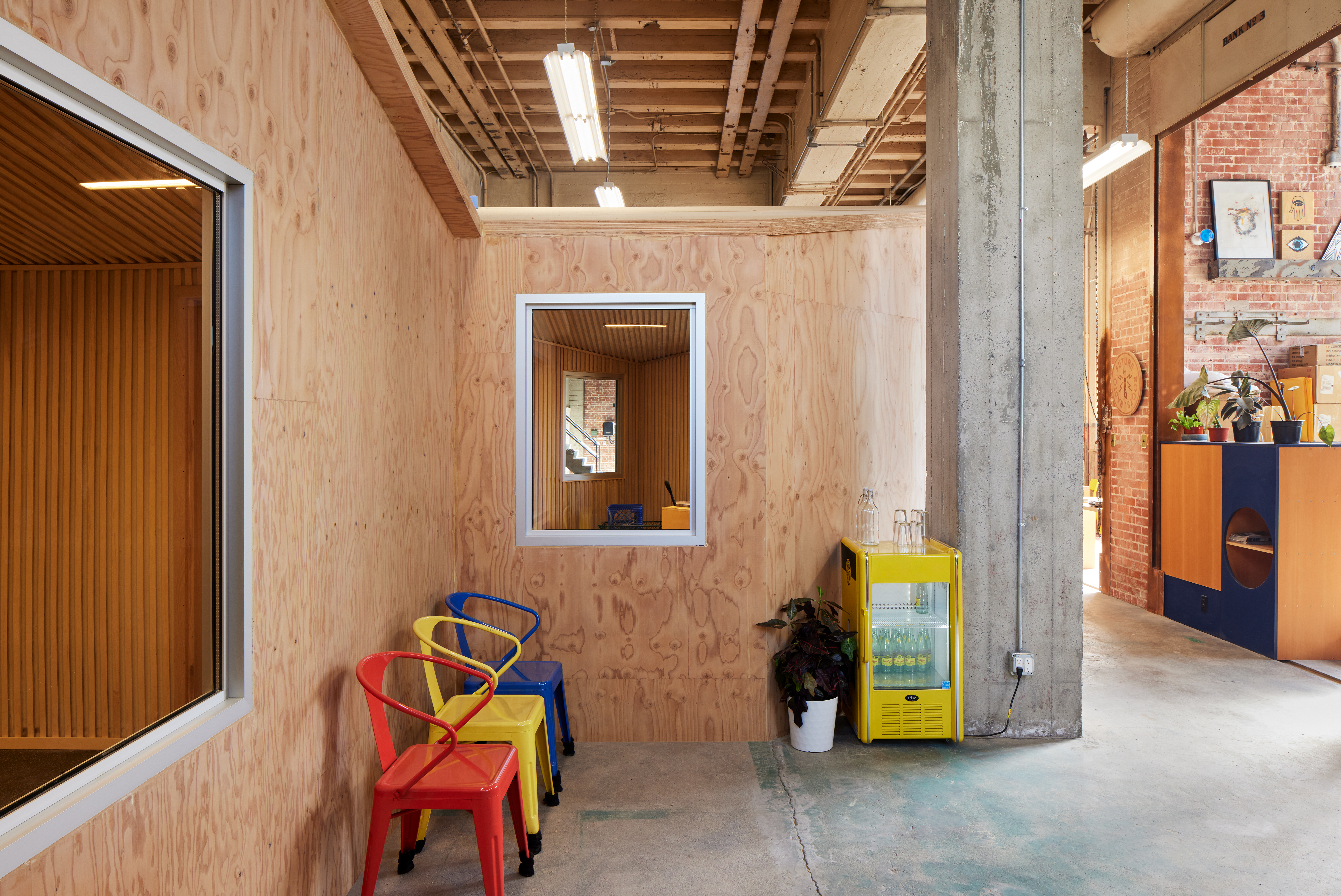 Located on the ground floor of a former LADWP building near USC, the new location for the dublab headquarters set out to produce a new physical space for the digital community that dublab has cultivated. In approaching the design, Stayner Architects wanted to focus the design on the broadcasting studios, the core of dublab’s ethos. Wanting to highlight the studio, the concept centered around a building within a building, where dj’s, staff, and visitors are constantly moving around the studio as an object in the space.